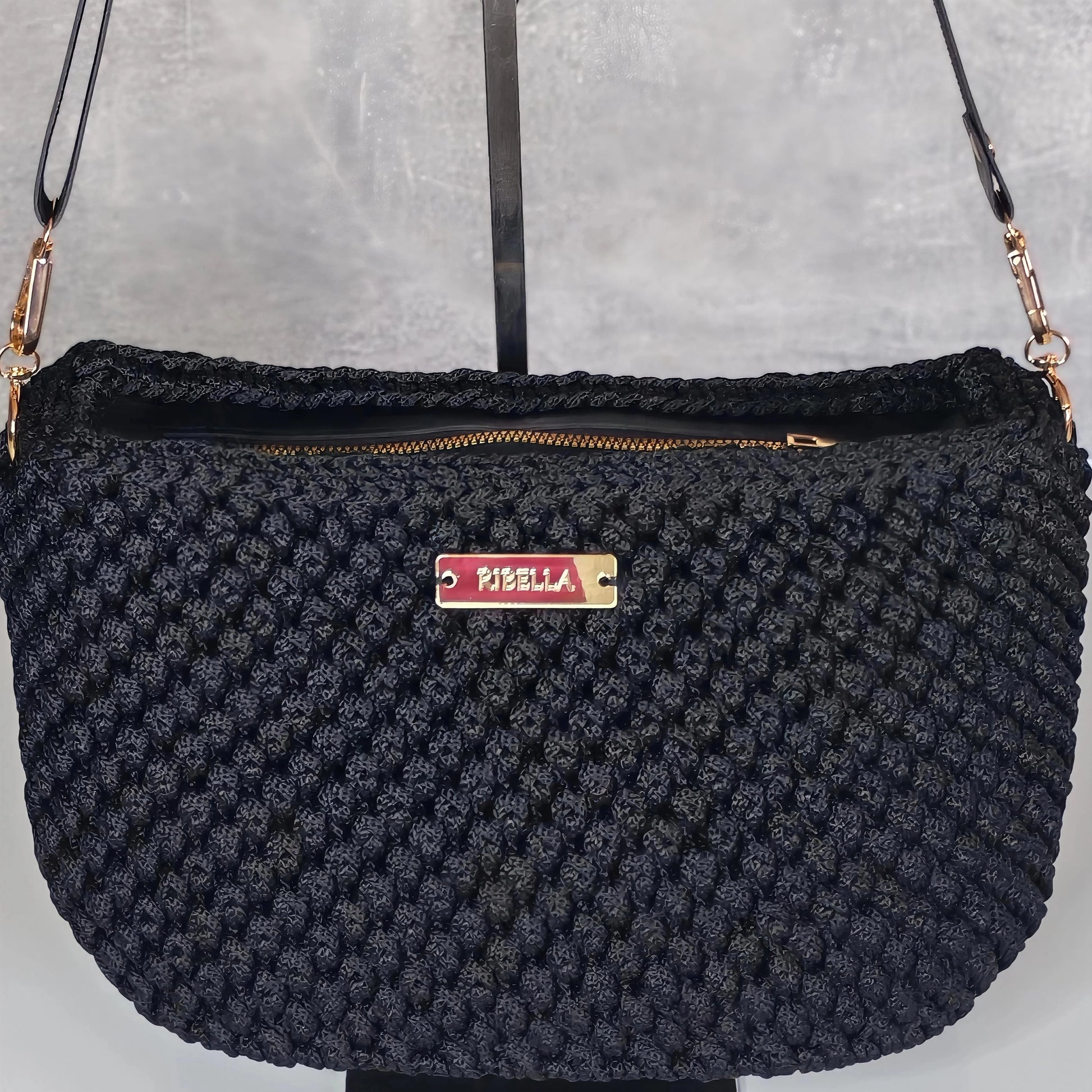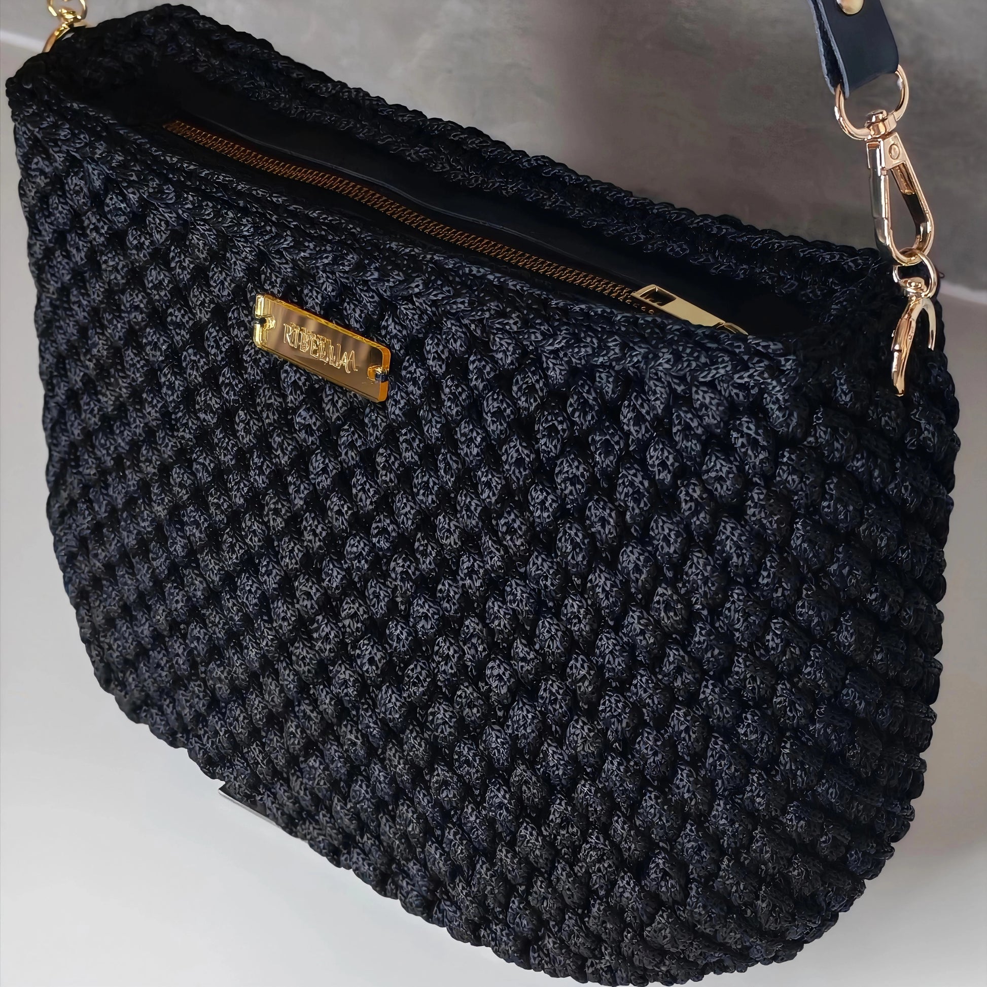 A táska kézzel készült, magas minőségű poliészter fonalból, amely garantálja a tartósságot és a formatartást. A textilbélés elegáns belsőt ad, míg a műbőr talp extra stabilitást és védelmet biztosít.